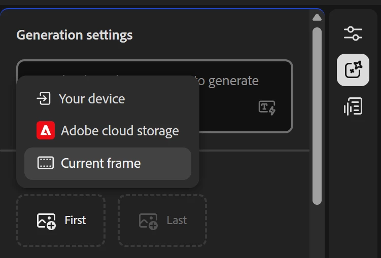 Export frame for firefly video editor