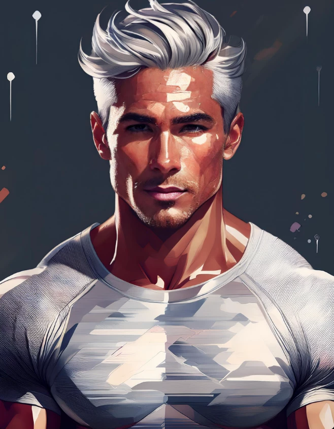 super hero who knits socks as his super power with white hair, 50 years old, no beard. Remove the beard. NO BEARD, no facial hair!