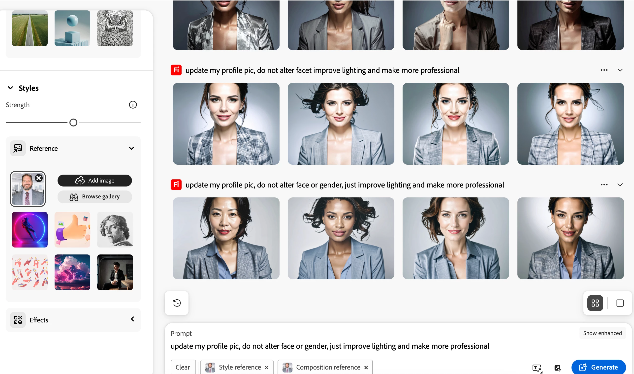 I wanted a quick update to my profile pic. So I asked for some modest updates. Instead Adobe (Firefly) decided not to listen to me or anticipate this most basic of requests from its user, and went ahead and showed me what I needed instead, a new gender, more bare chest and some ethnicity suggestions as well!