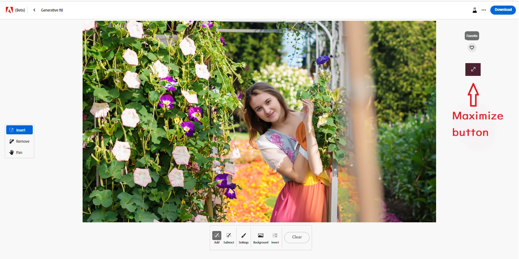 Generative fill画面で画像の枠内最大表示ボタンが欲しいです。