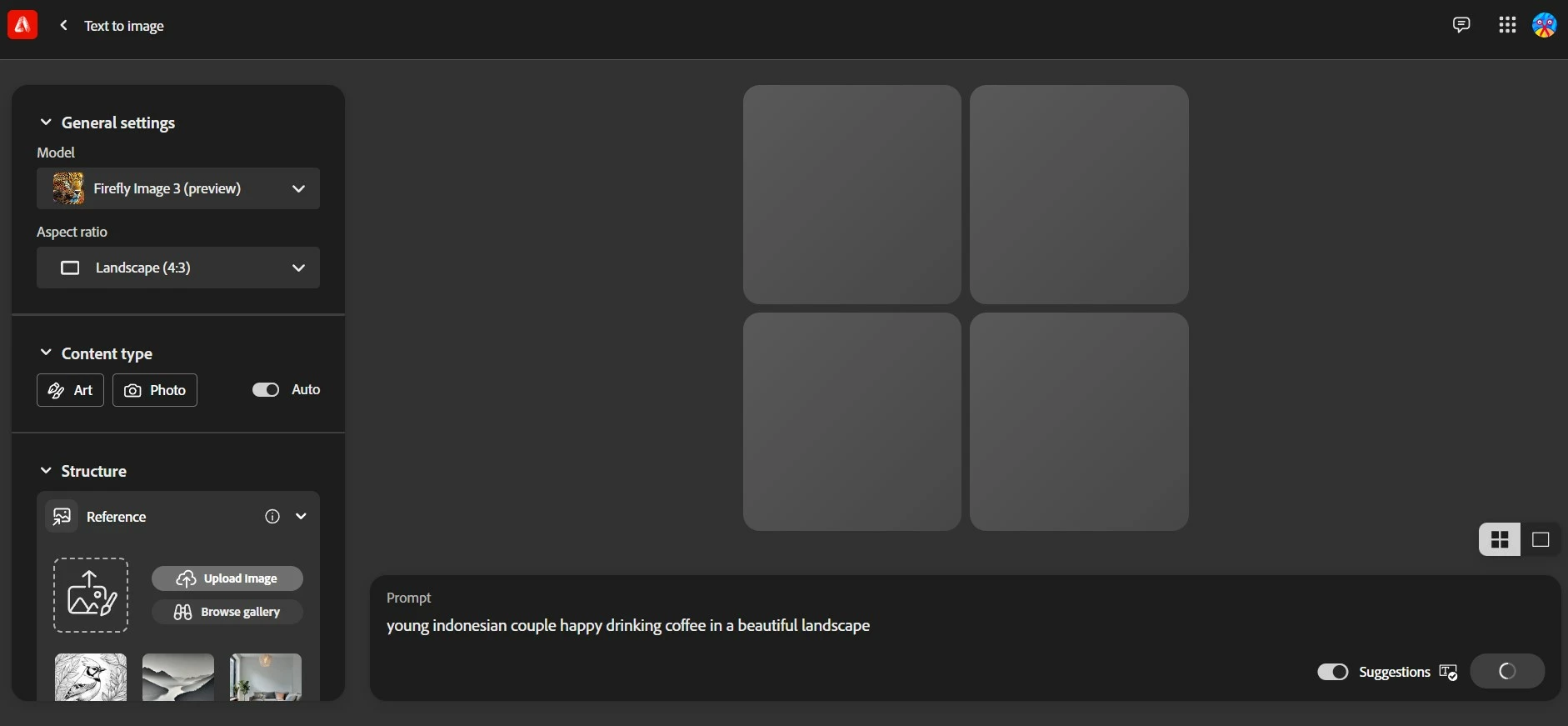 The process to get to the interface without generating an image is to open an image from the gallery (get inspired section).