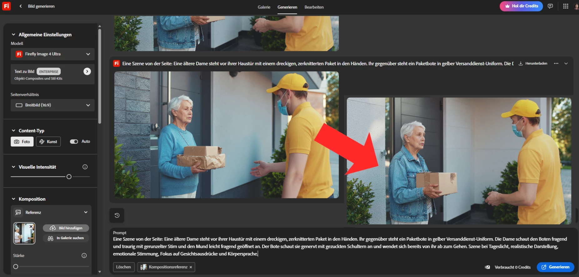 When using an already generated image as a composition reference for further generations, it is not possible to specify how strong the modification of the image should be. Therefore, the new image looks almost the same which is not what I am intending when creating a new image.