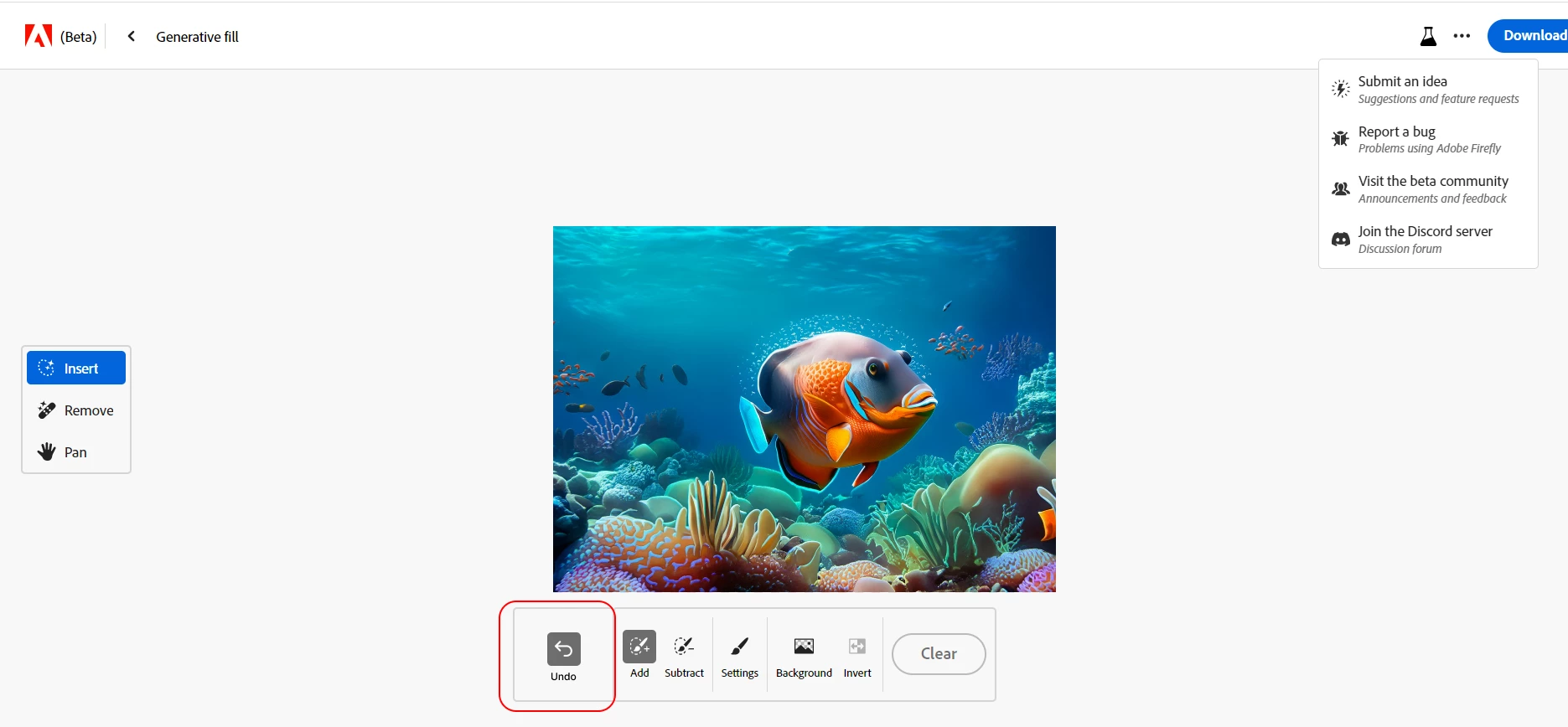 Using Generative Fill for the last couple of days and I feel like an "undo/redo" button would be useful, specially to compare what was to what is in the image if there is doubt regarding your creative direction to the image. A "compare" button has a similar approach but to the whole image, and not just selected parts, to compare the original image to the 'final product'.