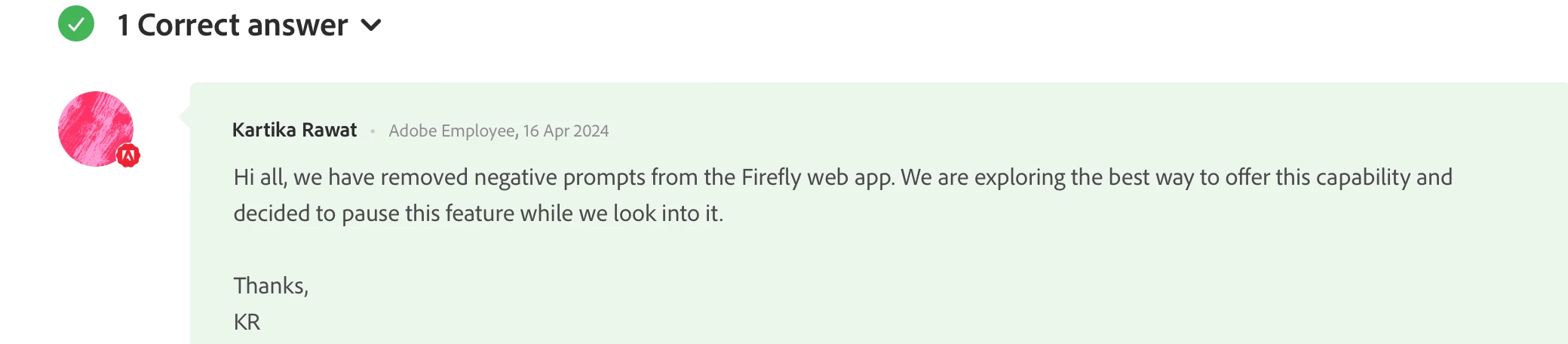 Please see the reply marked Correct from Staff at the top of the page. Negative prompts have been removed and are on pause.