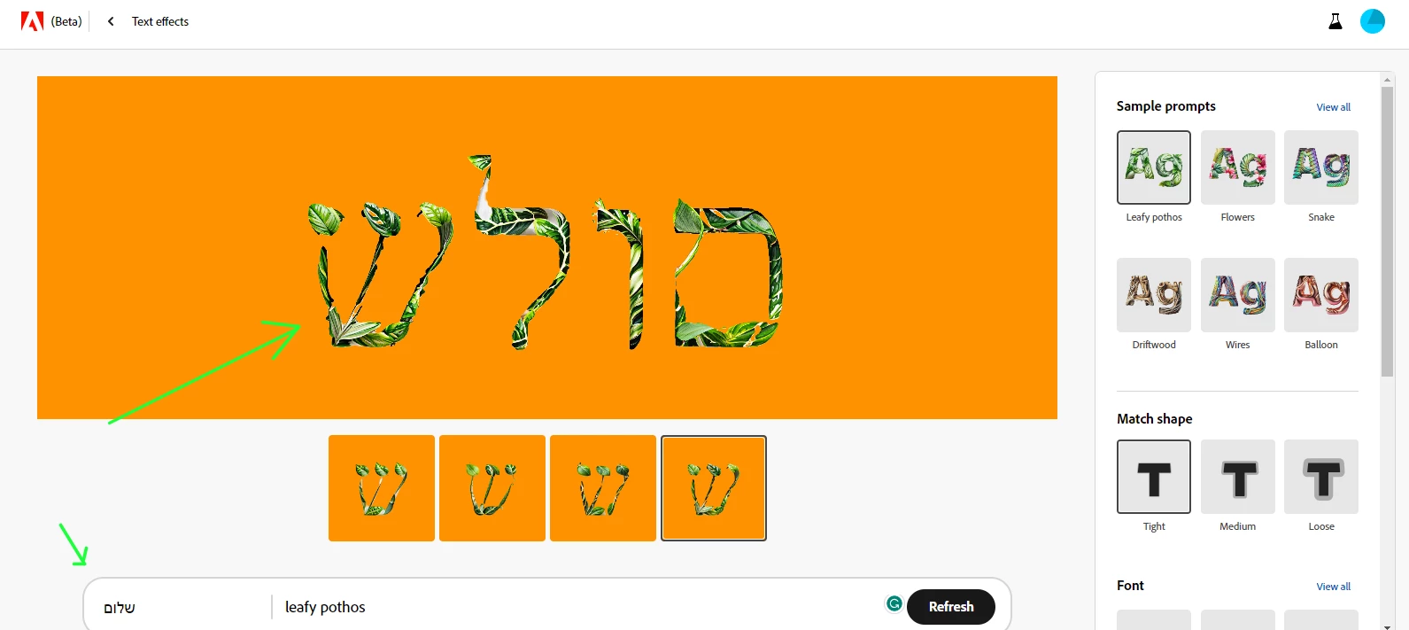 2.文字と文字が重なって表示されてしまう場合があります。一文字ごとにレイヤー分けされたPSDとしてダウンロードできたりすると便利だと思いました。これに関しては一文字ごとにジェネレートすれば解決可能なので優先順位は高くはありません。