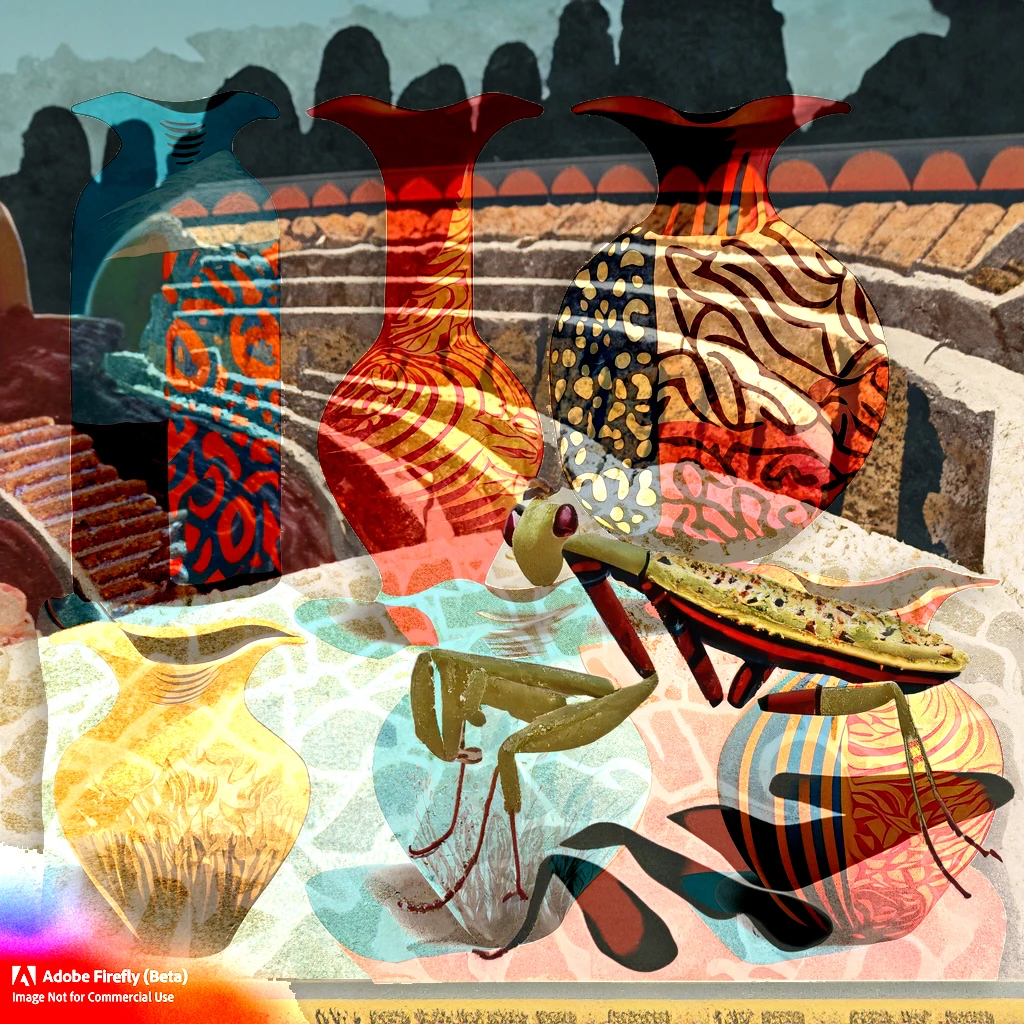 I created the the attached image in photoshop by taking two text-to-image creations and overlaying one ontop of the other with the linear light blend mode and a transparenscy of 42% with some masking around the mantis.