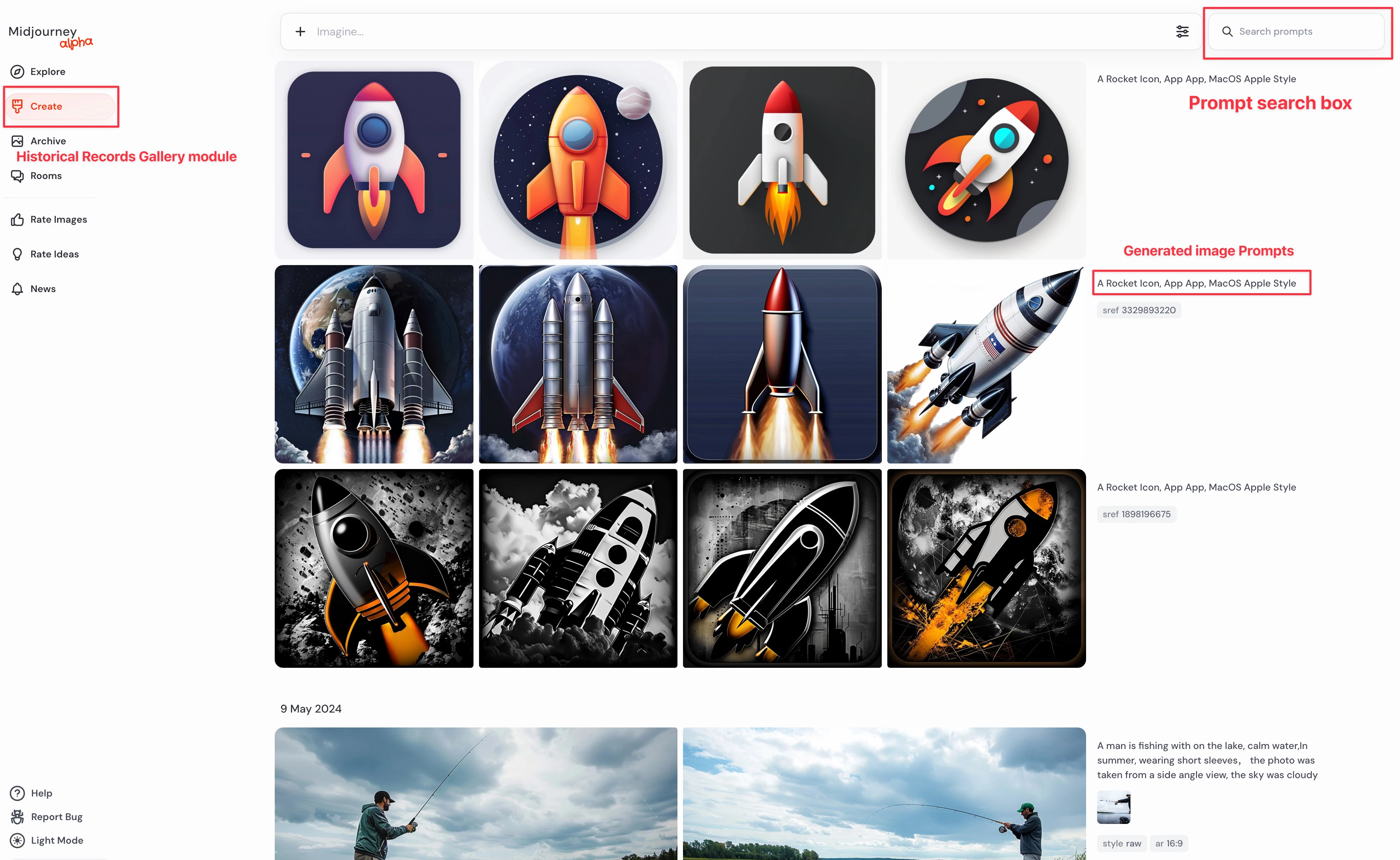 There should also be a search box to search for relevant keywords, allowing you to view image Prompts generated a long time ago.