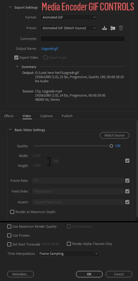 Please add more controls over gif output in Media Encoder and Premiere.