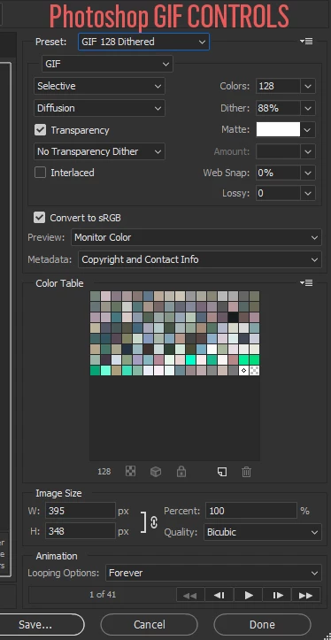 Add GIF output controls similar to Photoshop's Save for Web (Legacy) function