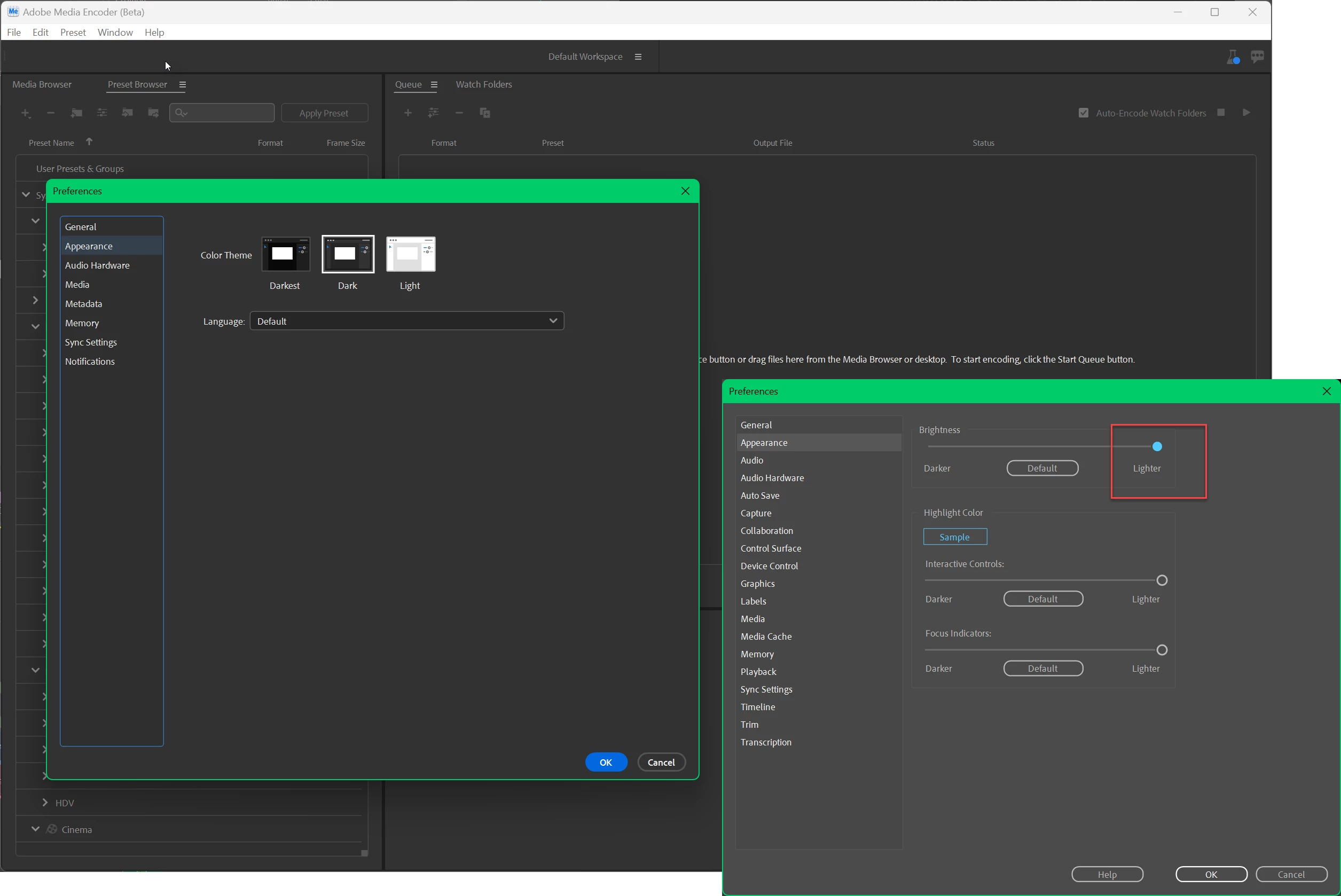 Would be nice if you could choose the same color as Premiere or v.v.