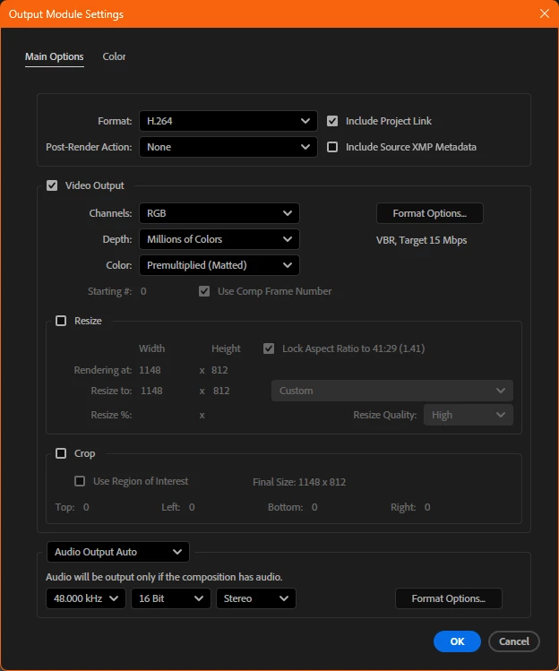 This is the same dialog box that can be accessed by simply clicking the queued item’s Output Module Settings in the Render Queue: