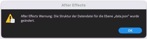 After Effets Warnung: Die Struktur der Datendatei für die Ebene "data.json" wurde geändert.