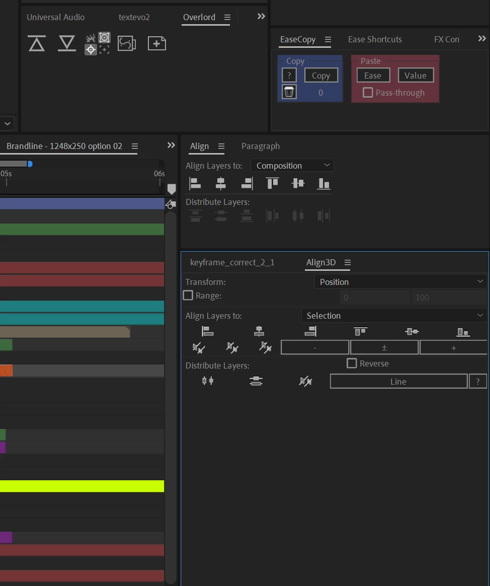 The one I use align 3d' requires a lot of screen real estate to access the buttons. Maybe Adobe should just work in more of the most commonly used scripts into AE in an 'addition scripts' section, so we aren't ******* around with updating scripts for core/basic functions like this. 🙂