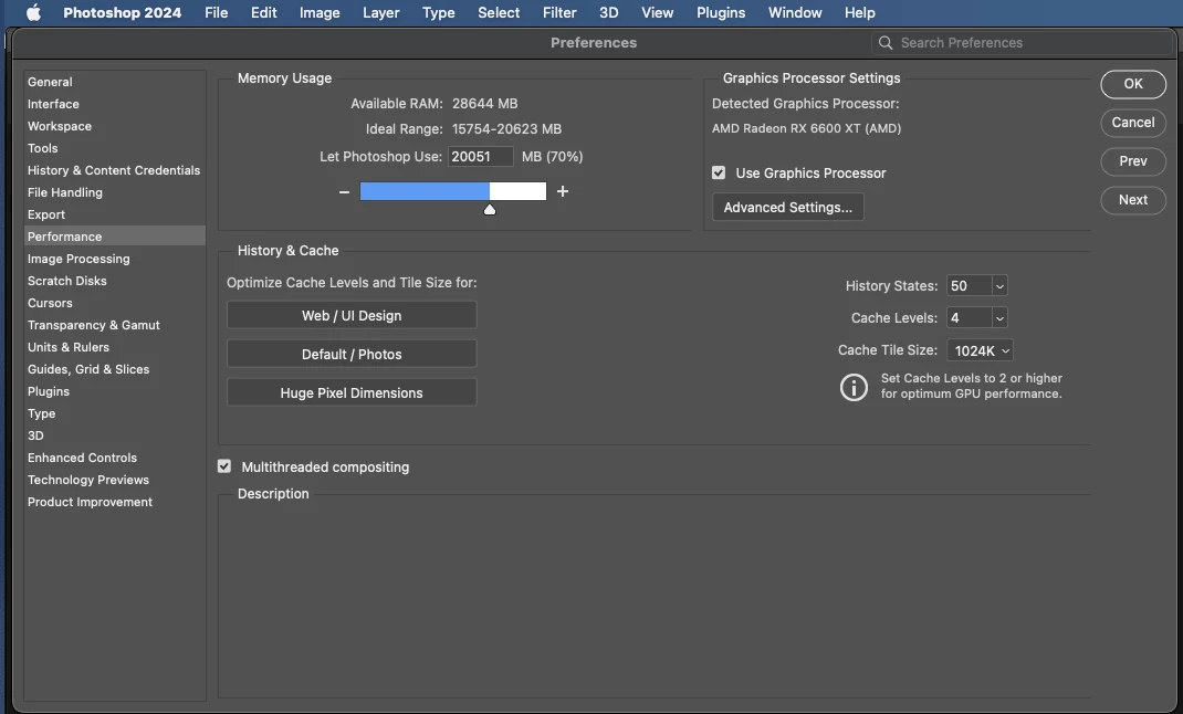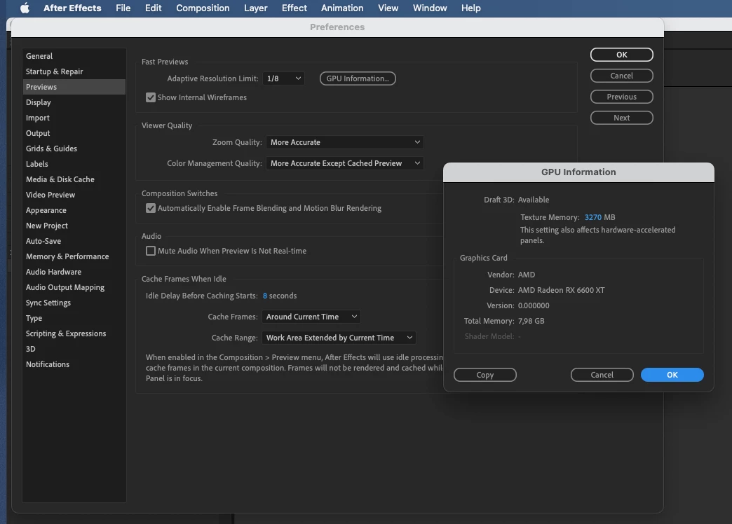 This works in Illustrator, Photoshop, After Effects, Premiere, InDesign, Xd, Lightroom and probably a whole lot more CC apps I don't even use. I have to say (with some annoyance as it's a central part of my workflow) that regular Adobe Bridge does not want to use my Vega 56 or my Radeon 6600 XT, but the Adobe Bridge Beta does, so I'm using that instead of regular Adobe Bridge.