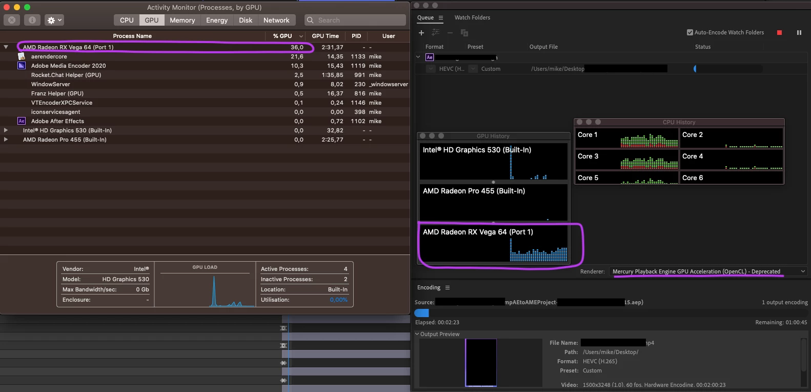 The ability for After Effects to see and use an eGPU unit to take advantage of more GPU power.