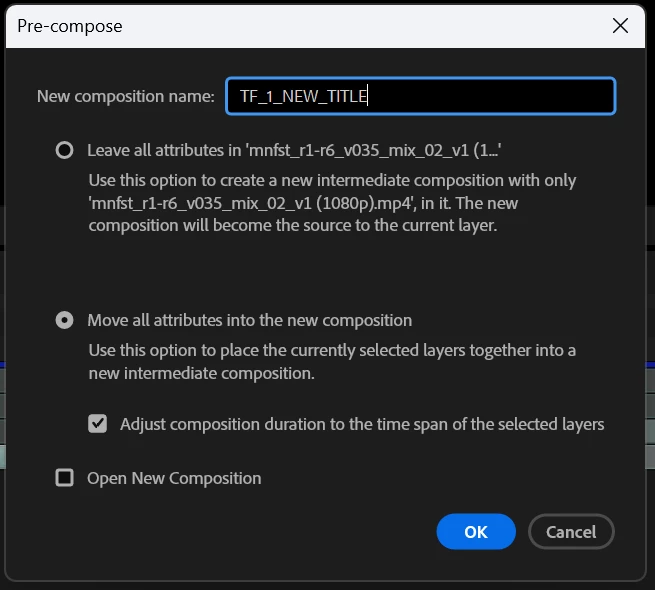 It would be extremely helpful to have a dropdown in the Pre-compose dialog that lets you assign a label colour to the new precomp as you create it.