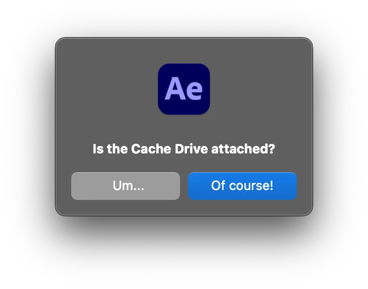 The number of times I've forgotten to plug in my external cache drive when launching After Effects is astronomical.