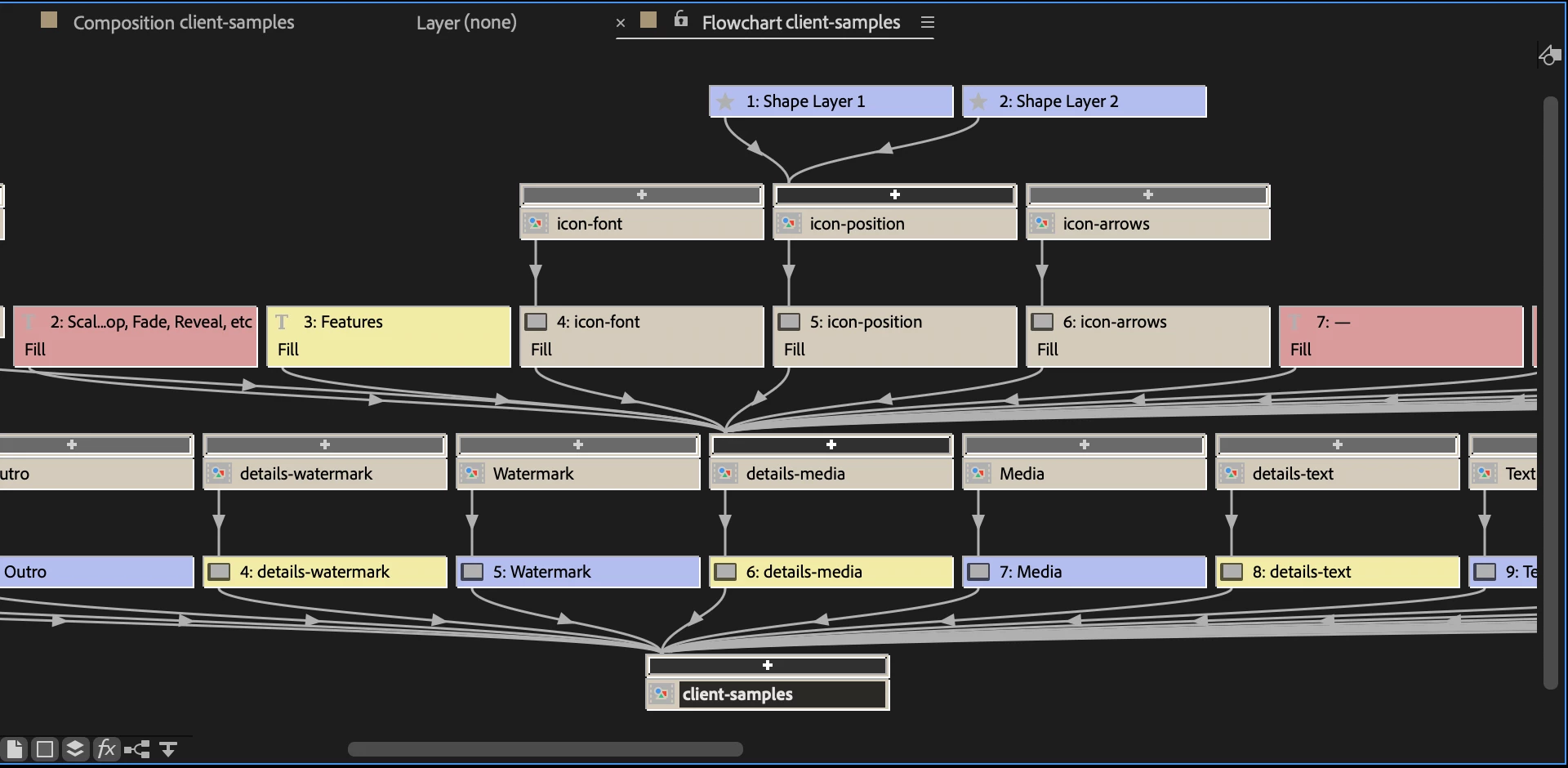 Additionally, everyone keeps asking about nodes in AE.. but this feels like a way where you could visually and somewhat easily plug controls upstream into various comps depending on needs of the project or logical choke-points for the controls.