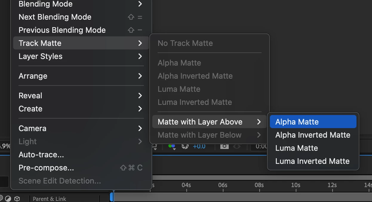 Keyboard driven way to assign track mattes in the new track matte system in AE 2023
