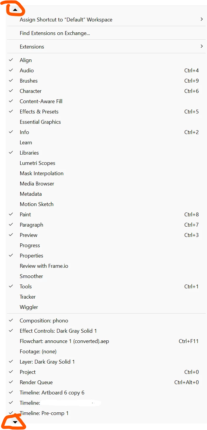 Parenting, matte, window, scripts menu are horrible to use when the list gets bigger than the screen.