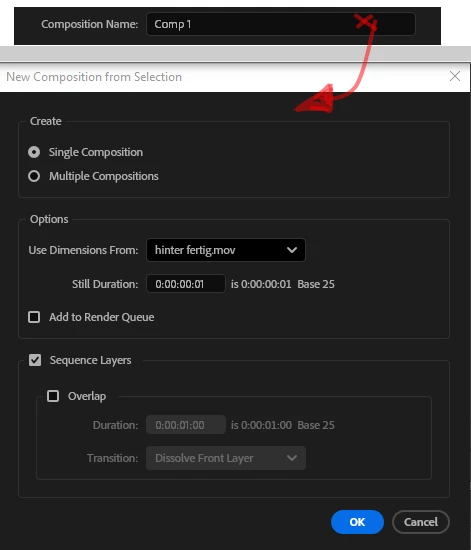 "new comp from selection..." WITH "COMPOSITION NAME" FIELD!