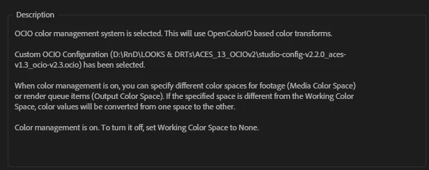 Furthermore the Description field should not give a generic description of how AE handles the config. It should contain the actual description of the config itself like in Photoshop.