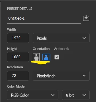 Orientation option in composition settings