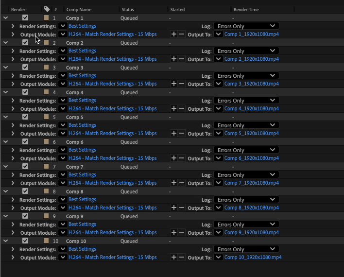 Right now, when multiple compositions are queued but not yet rendered, each one requires its own manual “Output To” selection. This gets tedious fast when you have dozens of comps waiting. It would be a major time-saver to select multiple queued items and assign a single output destination to all of them at once. Currently, even if you select all the comps and set the output for one, it doesn’t propagate to the other selected comps.