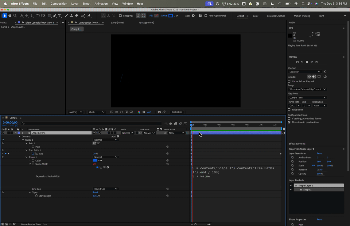 It would be great if the taper stayed constant and was unnaffected by the trim path, so this can just be animated cleanly with a single set of keyframes on the trima paths out.