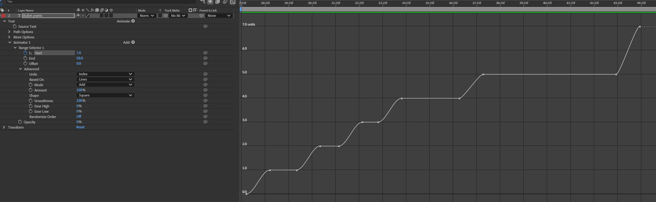 Currently, if, for example, I have a chunk of text (bullet points) and I animate ‘per line’, and have these keyframes: