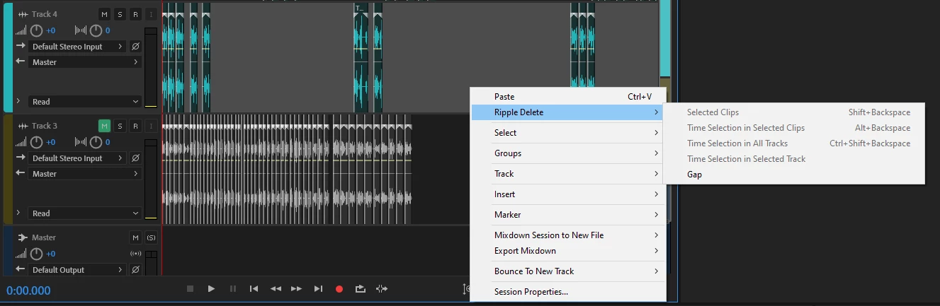 I record voiceovers in Audition and delete the dead air between takes, and right now there's a laborious, tedious, and unnecessary step between deleting that dead air and actually moving the clips together on the timeline. That step is to right click each and every gap between each and every take, one by one, and select the "Ripple Delete Gap" option (which there isn't even a keyboard shortcut for by default). This literally increases how long it takes to finish a job by a multiple of however many takes were recorded. There's no technical reason that Audition can't identify where empty space is on a track and ripple delete all of it. Other programs can do it. But in Audition, if you're organizing 30 line reads, it takes 30 times longer.