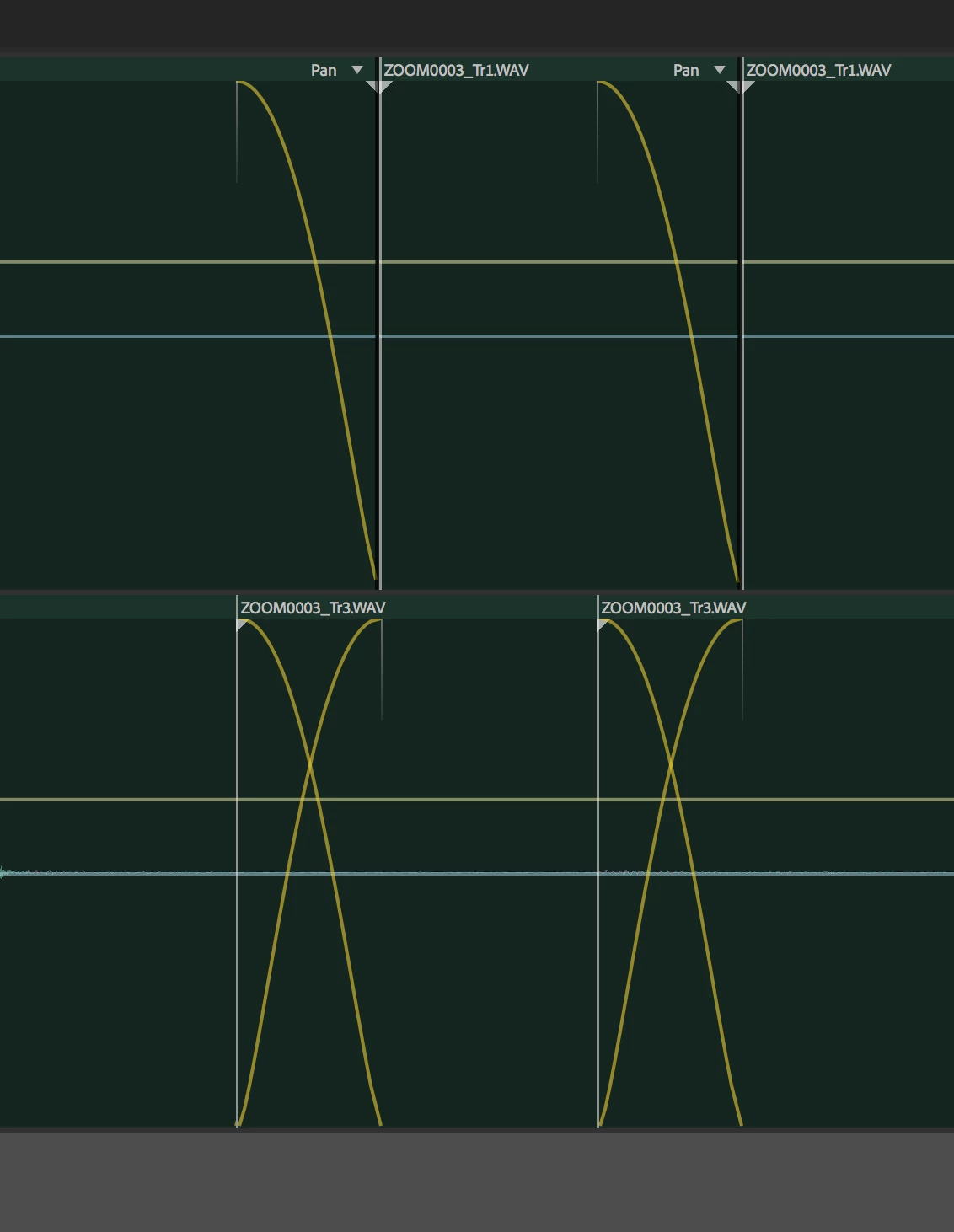 In premiere, I insert room tone between voiceover bytes in order to smooth out the voiceover and make the edits sound natural. (this is a common practice in industry). I crossfade these chunks of roomtone over a duration of 2 or 3 frames. This is very easy to do quickly in Premiere, selecting all of the transitions and using the keyboard shortcut. However, these crossfades change when I bring the sequence over to Audition for the soundmix. (I'm sending it over from Premiere via Edit -> Edit sequence in Audition). The crossfades become fade-outs that bump up against each other. Obviously this is not ideal, and I have to go through and adjust them one-by-one over the duration of the entire film.