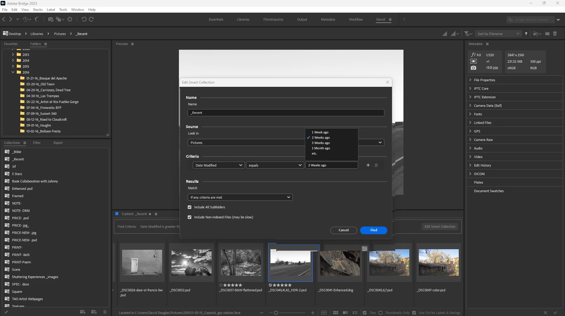 Bridge Smart Collections Criteria: Date Modified by floating date range