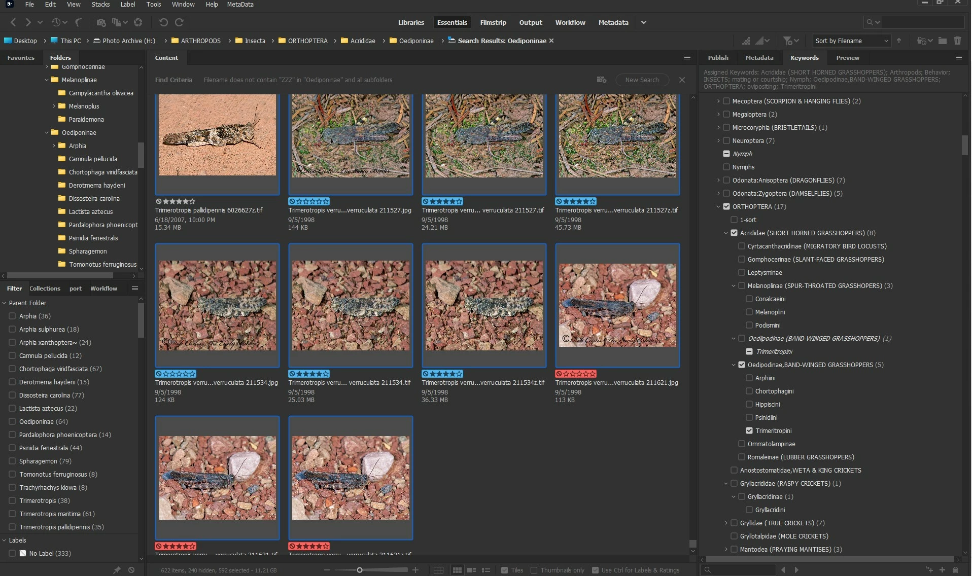 If I try to correct a misspelled keyword or move to new parent the old one persits. I delete it and I can uncheck all references to it, but when I check a subkeyword, they alnd all the others return. In the example, I corrected spelling of Oediponinae, which has subs and parents. I selected all and un checked them, and deleted the mis-spelled and its subs. So none are checked. I then start anew and check some in Trimeritropin and the others reappear. It is like an elementary particle that inexplicably action on one affect the other with no connection. So I have lots of the double cases I can't rid.