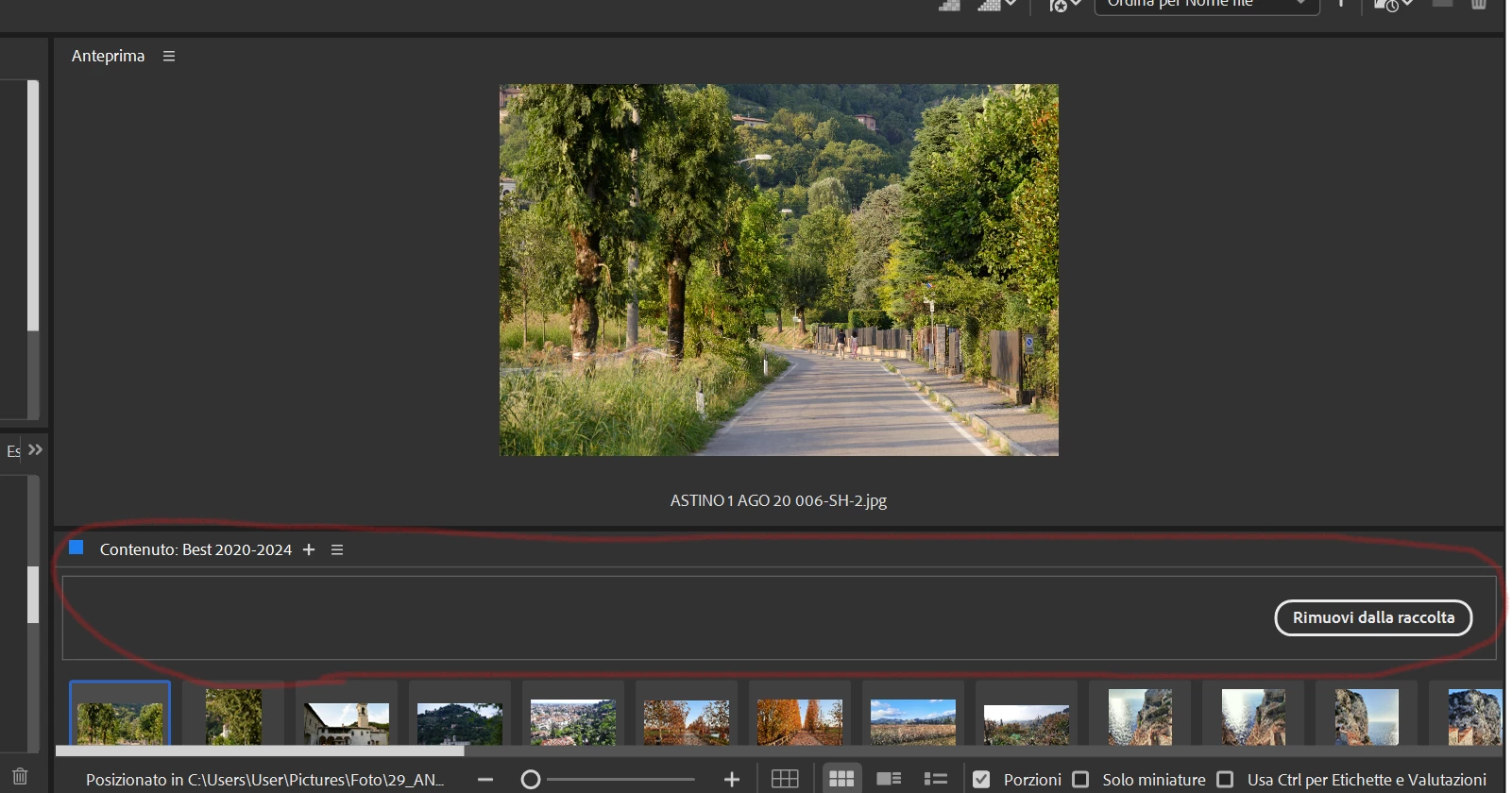 Alternatively, to avoid the use of the context menu, the "Remove from collection" button could be moved (shrinked) in the lower part of the Collections panel (besides the other commands in icons); or, pressing the "Del" button could provide the two options of deleting and just removing from the collection.