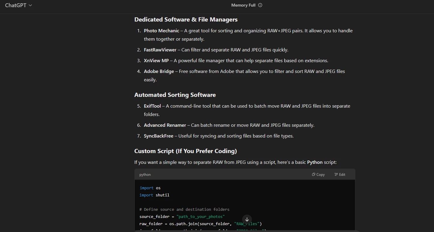 Adobe Bridge should include an automatic RAW & JPEG sorting feature, allowing users to group, separate, or filter files with the same name but different formats. A dedicated toggle should enable users to view RAW+JPEG as a single entry or split them into separate folders automatically. This would streamline workflow for photographers, reducing manual file management and improving efficiency.
