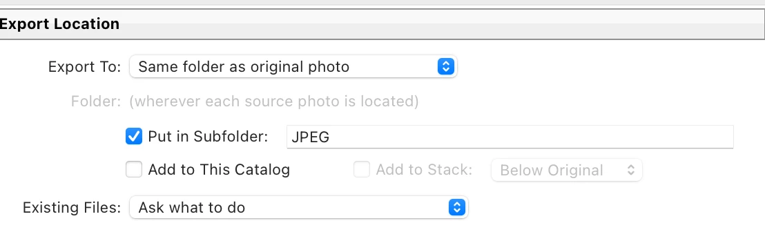 From the Camera Raw export dialog, I’d love to be able to save directly to a subfolder within the image’s original directory. Currently, the only two options are to Save in Current Location or Save in New Location, which defaults to whatever folder was last used for that option.