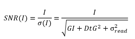Cameras are affected by both read noise and shot noise. The variance (or power) of noise is commonly expressed as :