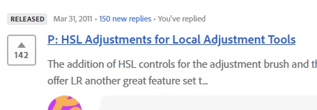 The addition of HSL controls for the adjustment brush and the gradient tools would be a wonderful advancement and offer LR another great feature set that I'm sure would come in handy for the vast majority of Lightroom users.