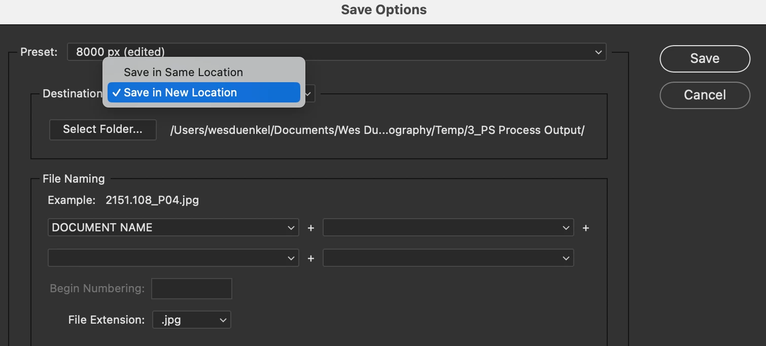 I understand the rationale if not wanting to alter the original file, but when selecting the Destination as "Save in New Location" there is no possibility of alterning the original file. As such, a simple checkbox that becomes active when choosing "Save in New Location" would dramatically increase the usefulenss of ACR's "Save Options."