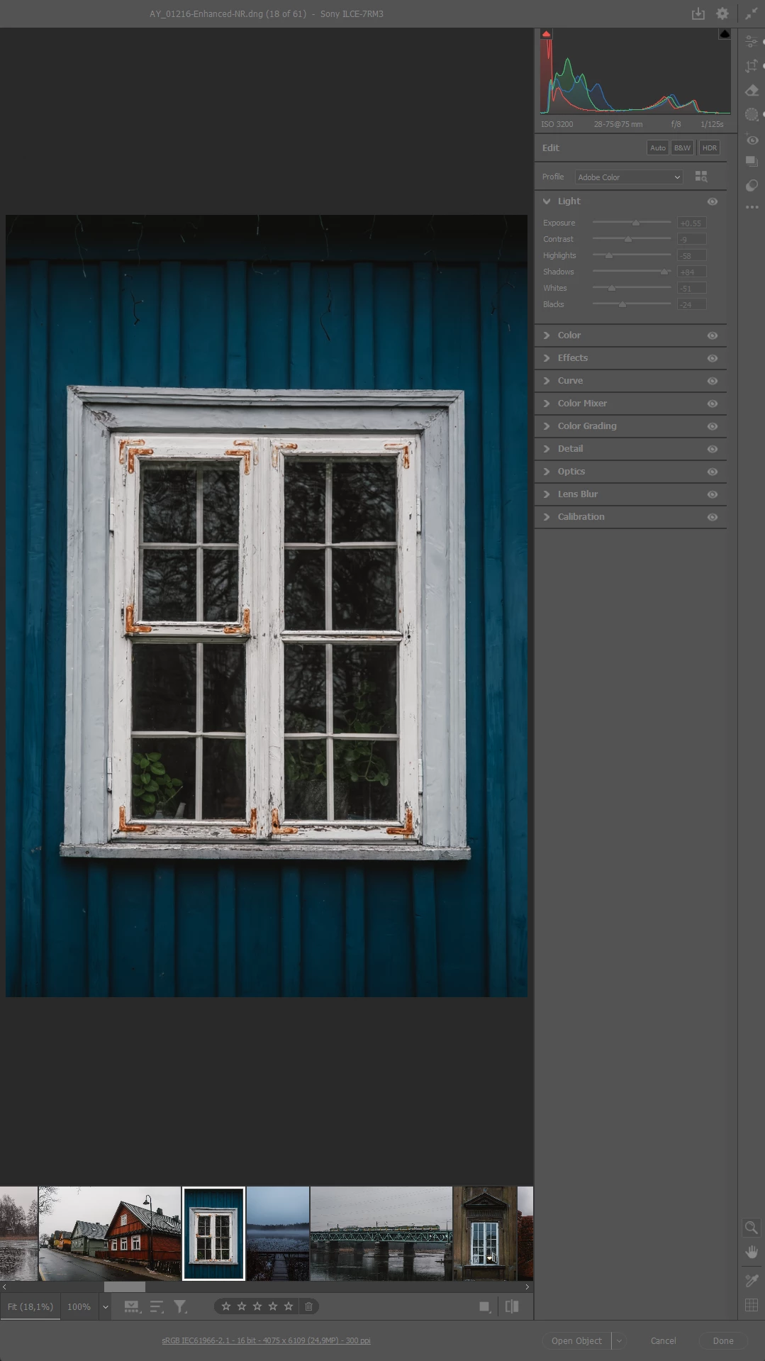 I’ve been a long-time user of Camera Raw and greatly appreciate its capabilities. However, with the growing prevalence of vertical media (e.g., social platforms, mobile displays), editing portrait-oriented images on a horizontal monitor—or even a vertically rotated secondary monitor—feels limiting.Currently, the fixed Adjustment Panel takes up significant space, forcing the image preview to remain smaller than optimal. In contrast, Premiere Pro allows flexible monitor setups (e.g., rotating a secondary monitor vertically) to better preview vertical content. For Camera Raw, I’d love to see either: