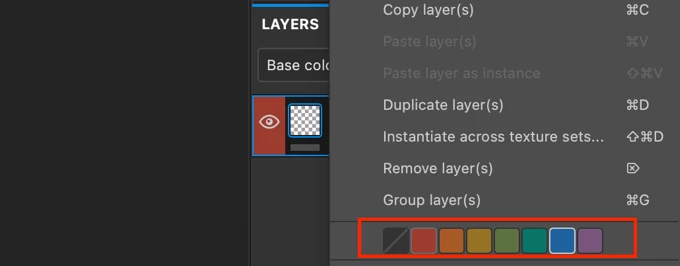 Currently, there’s a choice of 7 colors to tag a Layer in Substance Painter.
