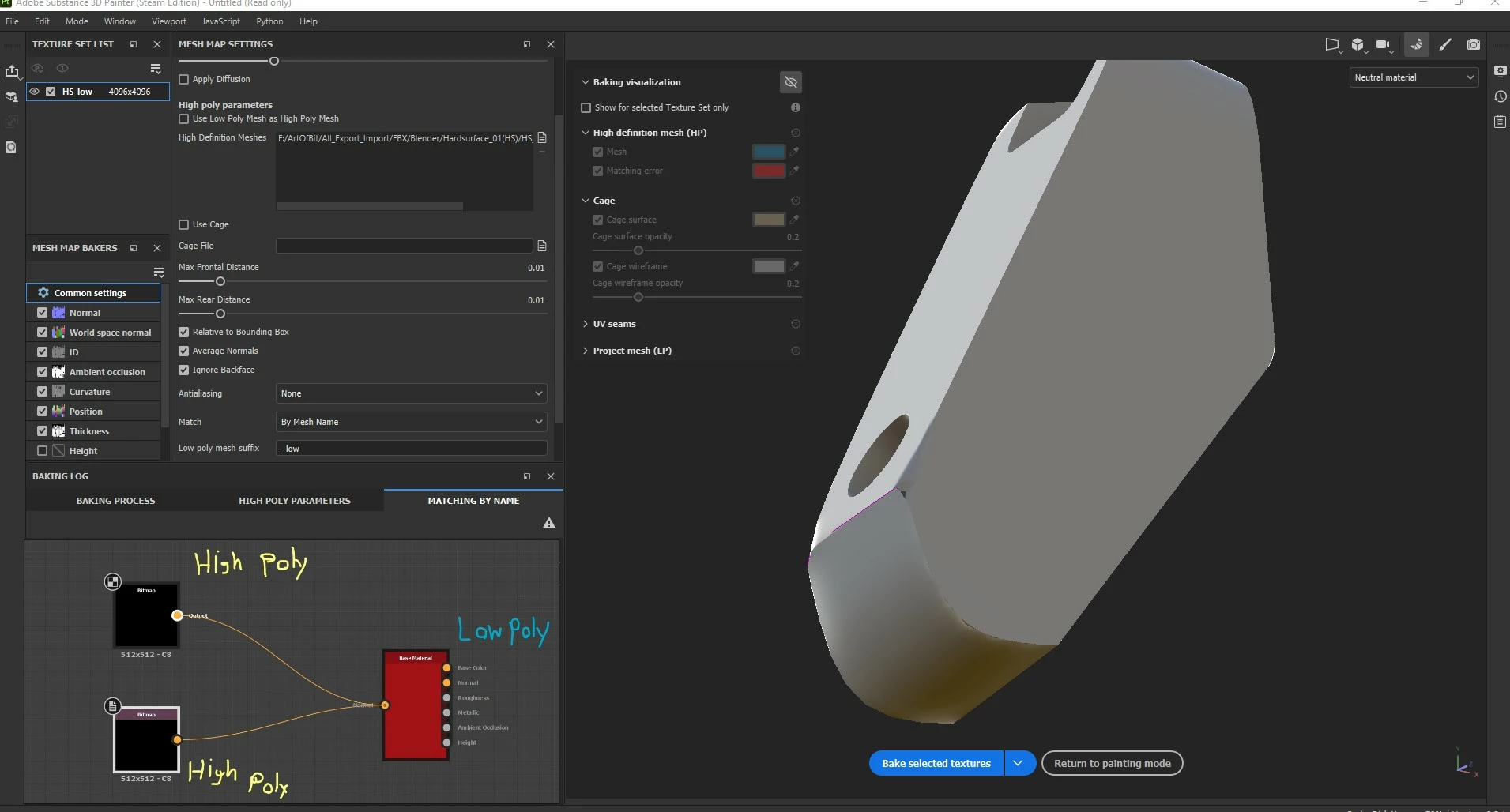 A Baking Graph: the idea is rather using naming convention to bake high-poly into low-poly which is sometimes can be confusing to beginners (at least it was for me) the baking graph by attaching the high-poly meshes nodes to low-poly nodes , this way we can have better visual control of what's going on.