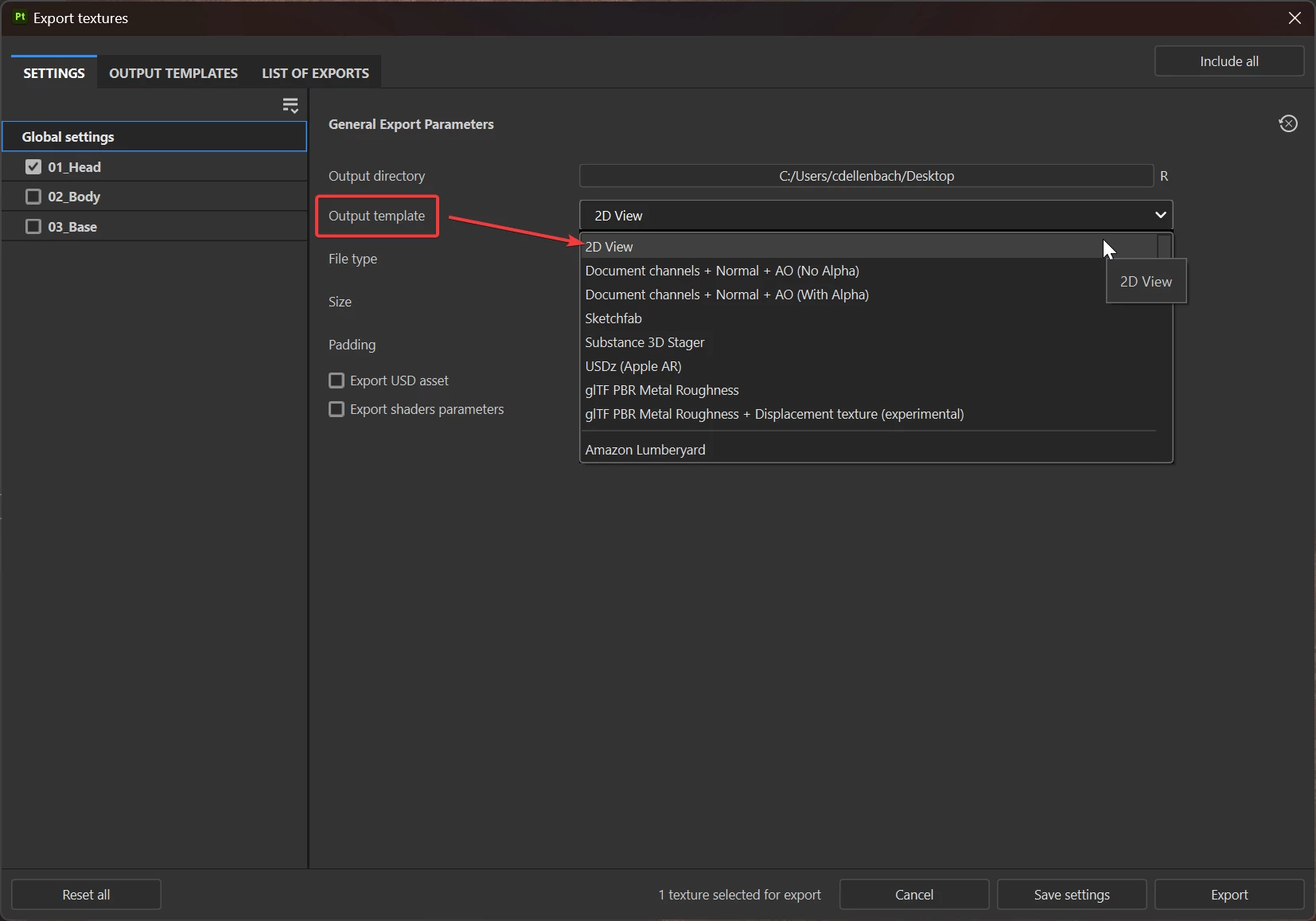 I'm writing to request a feature that would simplify workflows for many of us working on game assets. As someone who creates simple models for games, I often only need one single material with all texture details baked into a single map for my models. Right now, while Substance Painter does an amazing job generating multiple maps (e.g., Normal, Base Color, Roughness, etc.), there’s no straightforward way to export the flattened 2D view directly as it appears in the 2D Viewer.