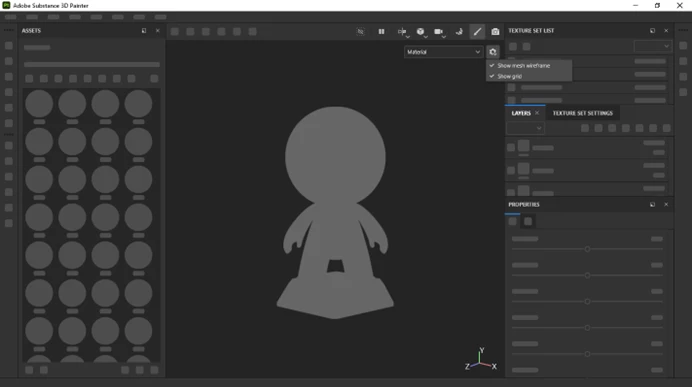 Substance 3D Painter has already an option to show the grid and the mesh’s Wireframe inside Display settings. The idea is simply to display these options directly in the viewport to make them more accessible.