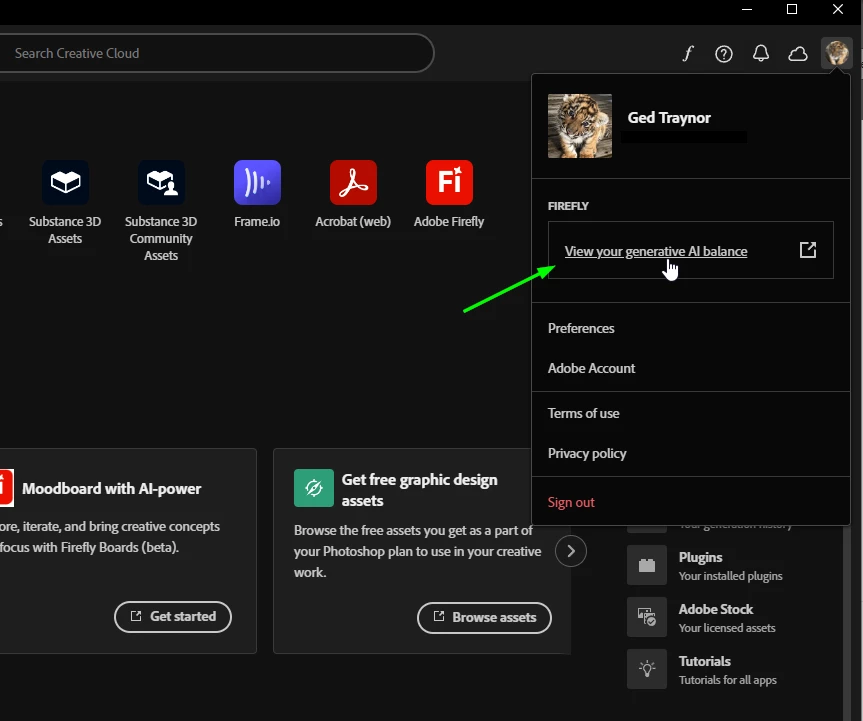 Hi, I noticed that after the last update of Creative Cloud (CC), it is not possible to know the remaining generative credits from the application itself. After the last updates of Photoshop and Illustrator, it is possible to know from the applications themselves, which is appreciated. The problem, at least for me, is the fact that the CC application, sends you to open the browser, through a link, to know the remaining credits. I liked it better as it was before and, in my opinion, it is a small step backwards. Greetings!