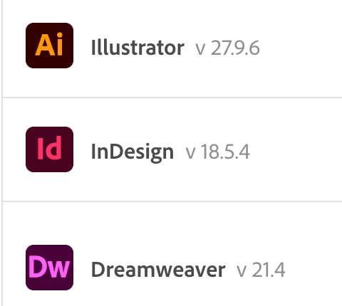 While I happen to know what InDesign version numbers mean (18, 19, etc.) because I deal with it daily, for the rest of the apps they don't mean anything to me. I have no idea what "Illustrator 27.x" is until I specifically look it up or compare to another listed version to make a conclusion that it's Illustrator 2023.