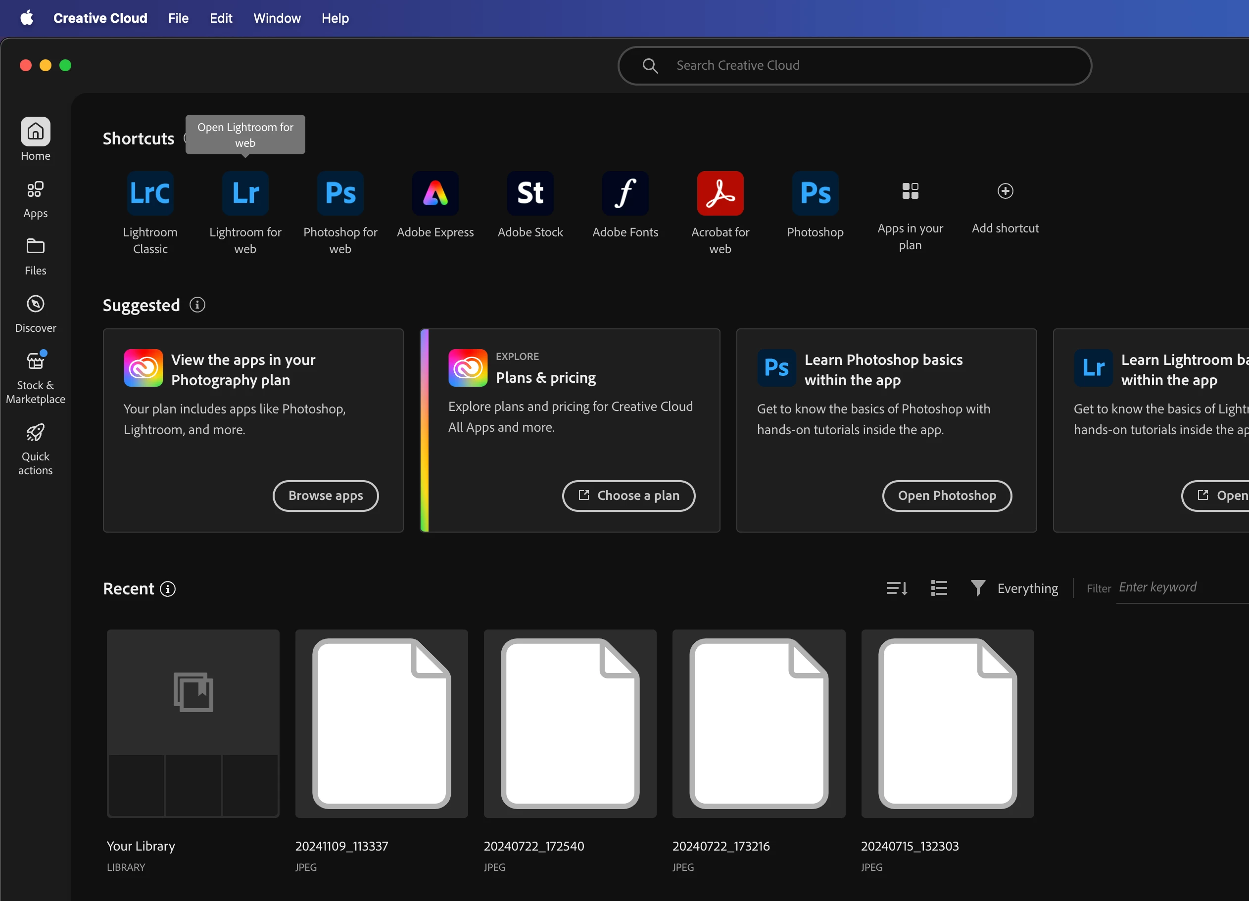 Wish to be able to clear Recents on the Home tab of the Creative Cloud desktop app
