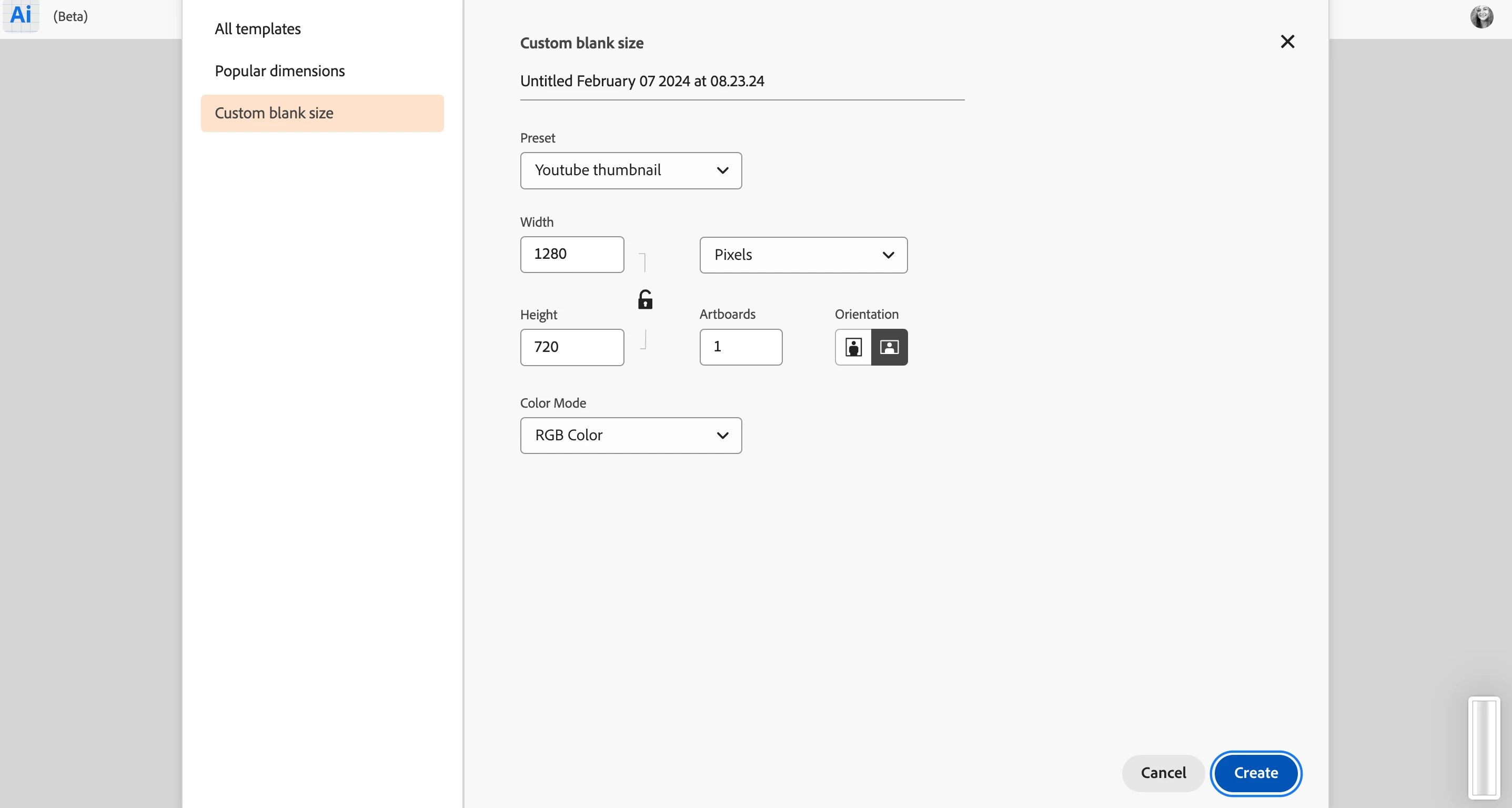 When opening "Custom blank size" the Preset always resets to "Youtube Thumbnails".