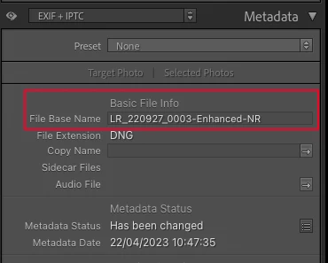 For example, renaming 20 files with random numbers in the file name to remove "Enhanced-NR" out of the file name can't be done as a batch series. I need to keep the original file names - extensions can vary. Going into each file's metadata to remove "Enhanced-NR" takes a long time. Having Lightroom decide to rename my files into names not of my choice is more than a little irritating.